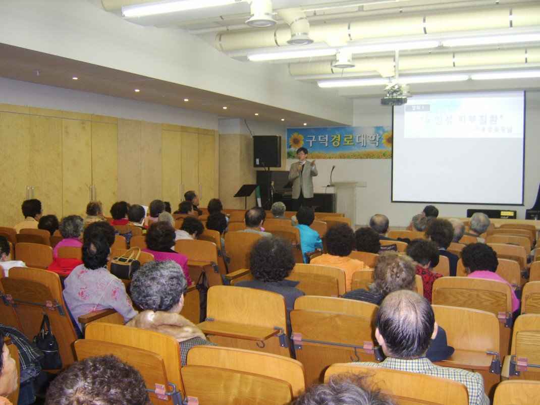 11.04 경로대학 이전글 다음글 목록 본문 11.04 경로대학 (위) 강의 "노인성 피부질환" (강사:이흥렬 고운피부과 원장님) (아래) 강의 "행복 적금" (강사:박극제 서구청장님) 댓글목록 등록된 댓글이 없습니다. 이전글 다음글 목록