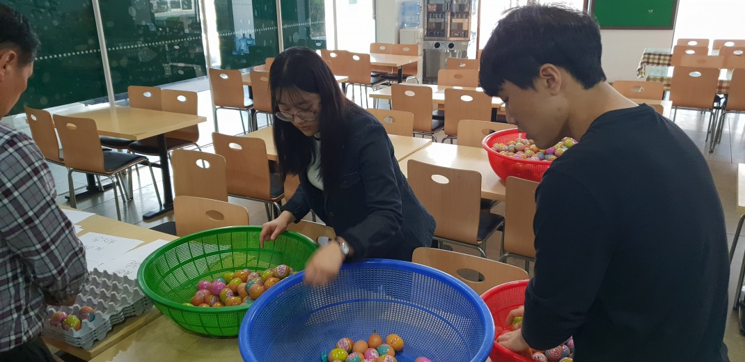 3월 31일(토) 중고등부 학생들이 부활절 계란을 포장하였습니다.